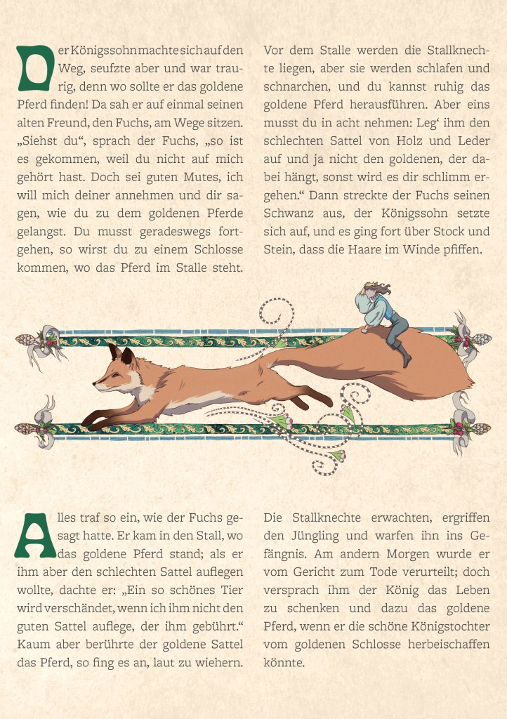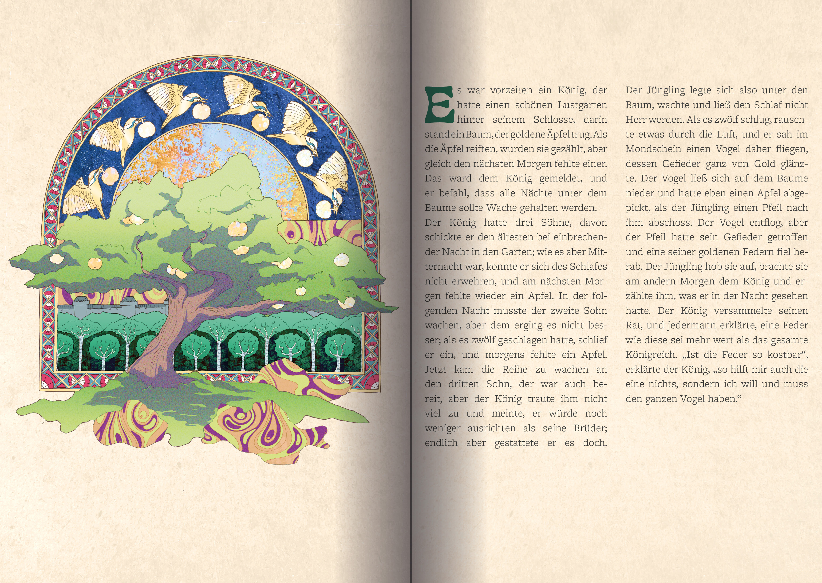 Illustrationen zum Märchen „Der Goldene Vogel“ der Gebrüder Grimm. Es ist wohl eines meiner Lieblings-Märchen, da es die typisch Grimm´schen Szenerien völlig auf die Spitze treibt.