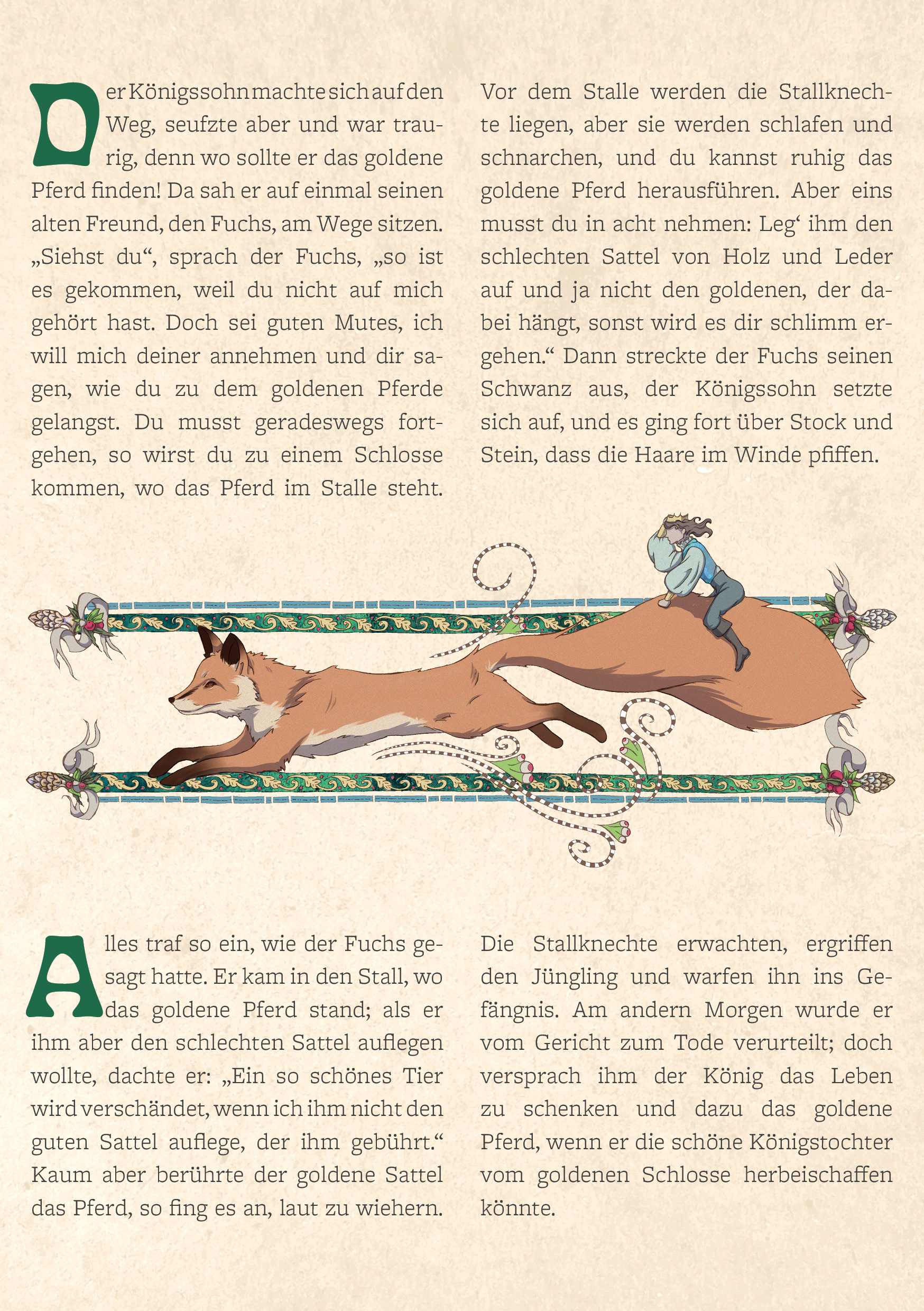 Illustrationen zum Märchen „Der Goldene Vogel“ der Gebrüder Grimm. Es ist wohl eines meiner Lieblings-Märchen, da es die typisch Grimm´schen Szenerien völlig auf die Spitze treibt.